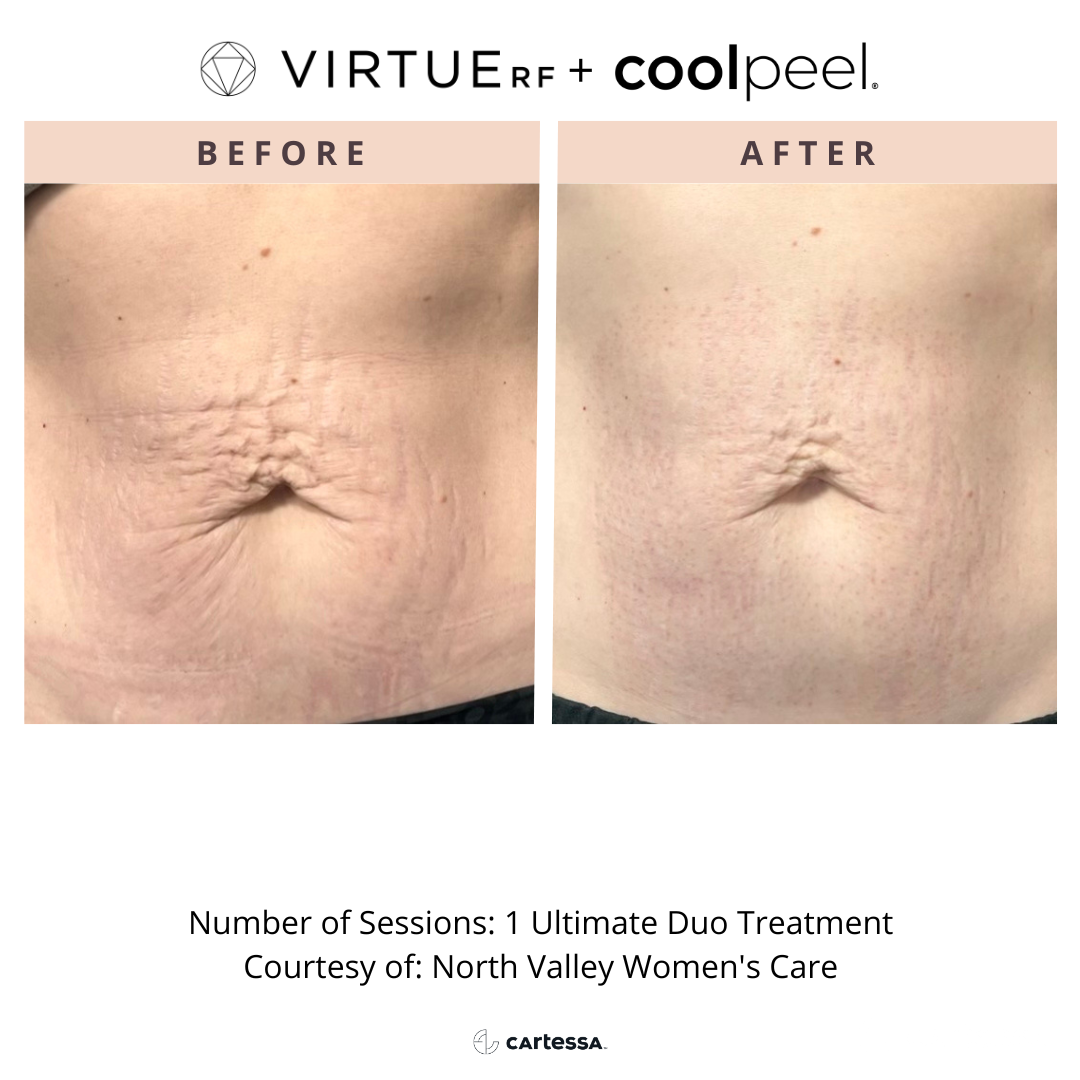 Ablation, the removal of damaged skin tissue, encourages the synthesis of new collagen while also delivering heat energy to tighten the skin. Sounds amazing, but CO2 treatments can include a lot of danger and downtime while the injured skin recovers.The adverse effects of CO2 treatments have seen a lot of improvement, but only CoolPeel can give a fractional ablative therapy without the need for downtime. Hyperpigmentation, demarcation, or caused infection are all very unlikely outcomes.